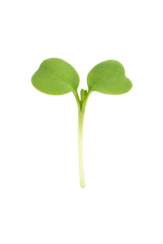 ブロッコリーのマイクロリーフは、鮮やかな緑色とハート形のかわいらしい葉が印象的な品種です。ブロッコリー特有のやさしい青みと穏やかな甘みを幼葉のかたちで凝縮しており、料理に清潔感と自然な温かみをもたらしてくれます。